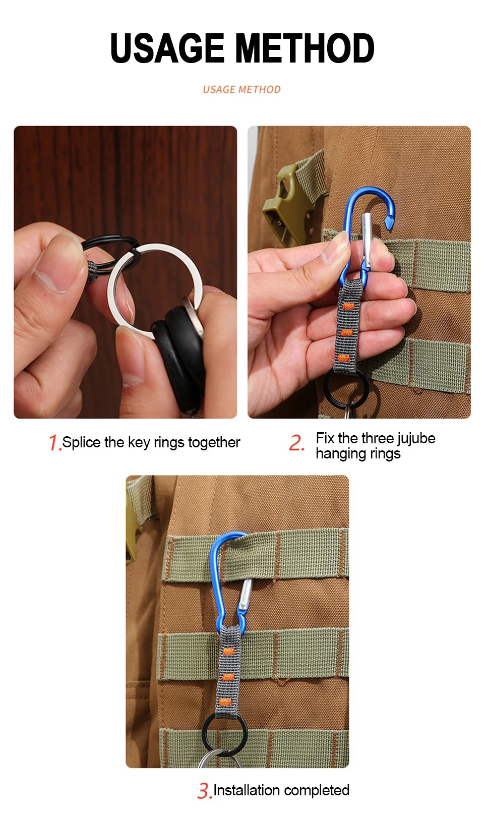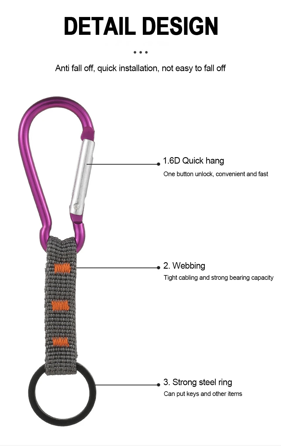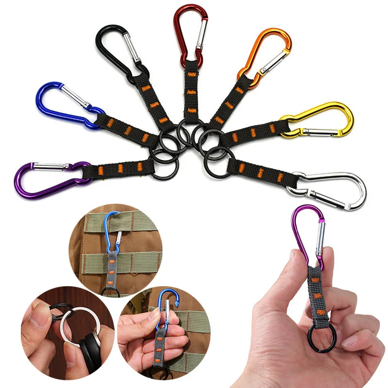 2Pcs Colorful Tactical Keychain Carabiner Outdoor Mountaineering Buckle Camping Hiking Travel Backpack Carabiner Belt Key Ring