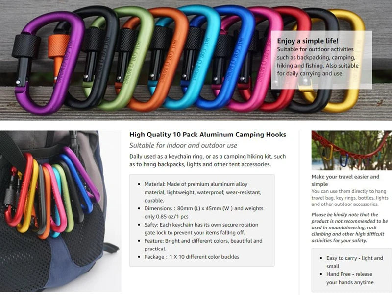 Aluminum Carabiner D-Ring Locking Key Security Camping Climbing Hiking Keychain ecure Rotation Gate Buckle Clip Hook